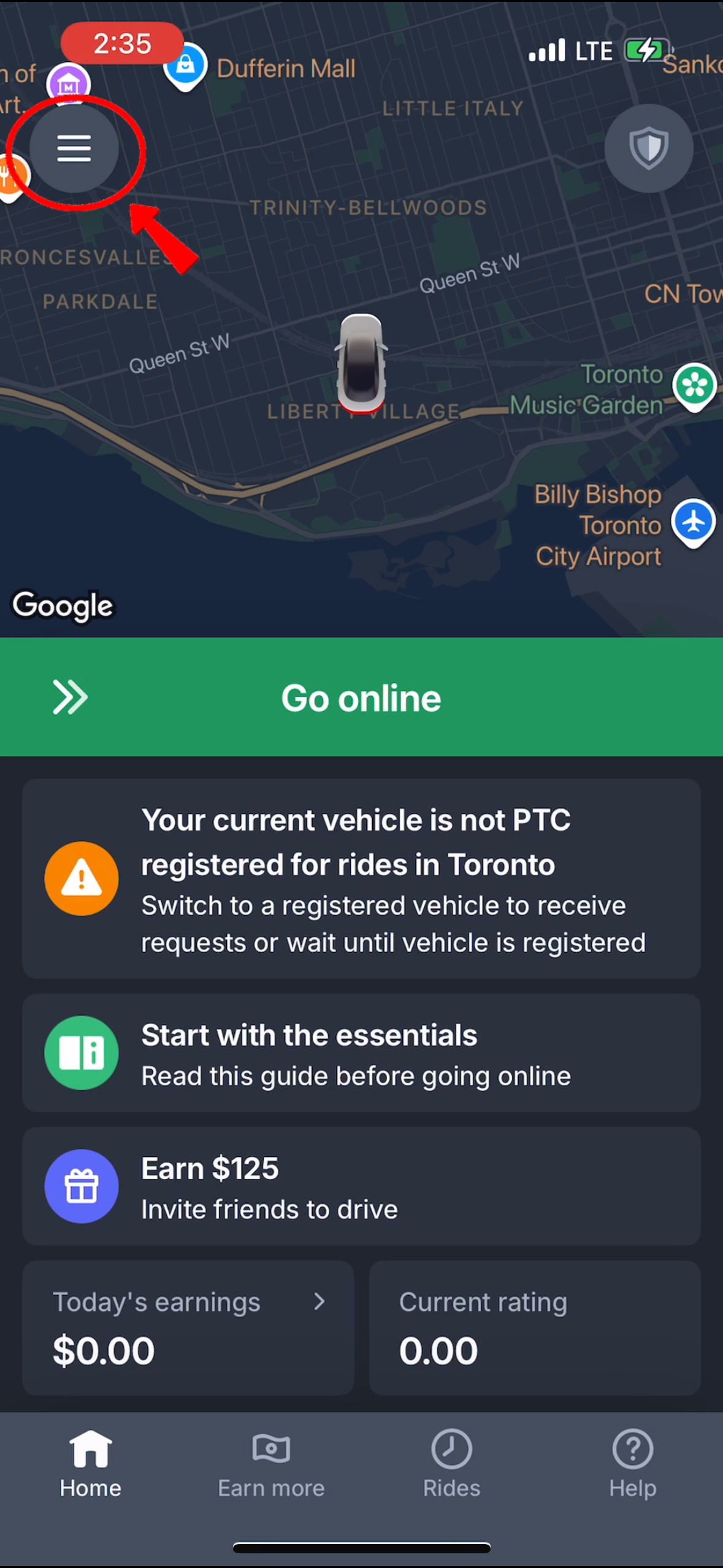 - Go to the menu at the top left of the home screen in your driver app