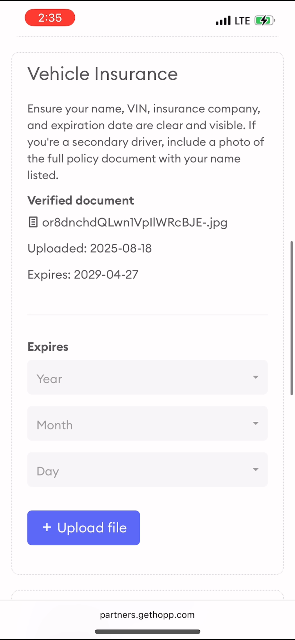 Driver Document Upload