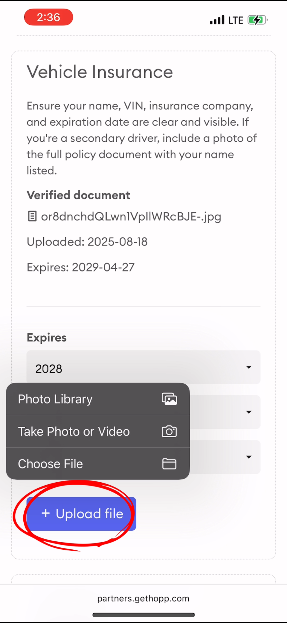 Uploading documents using the driver portal