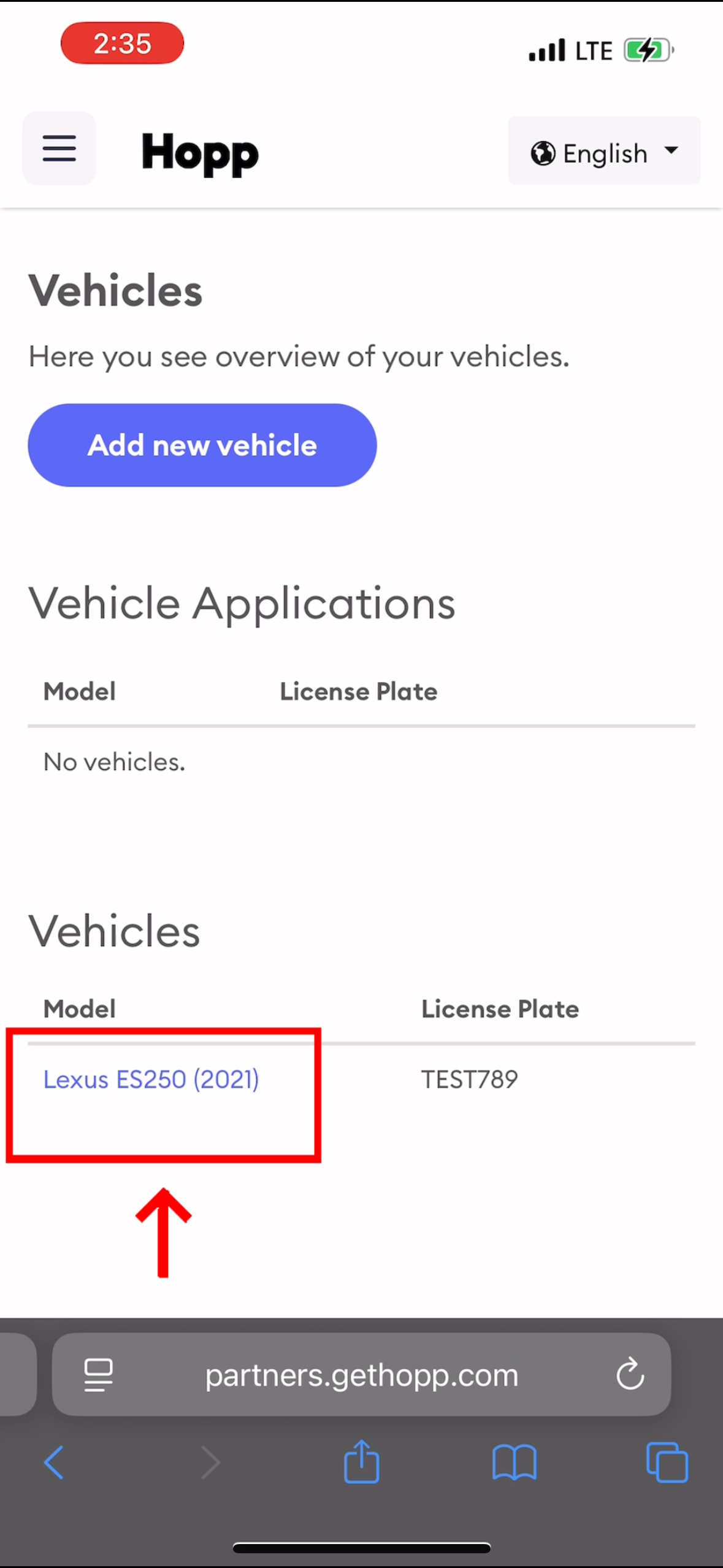- Open the menu and select "Vehicles"