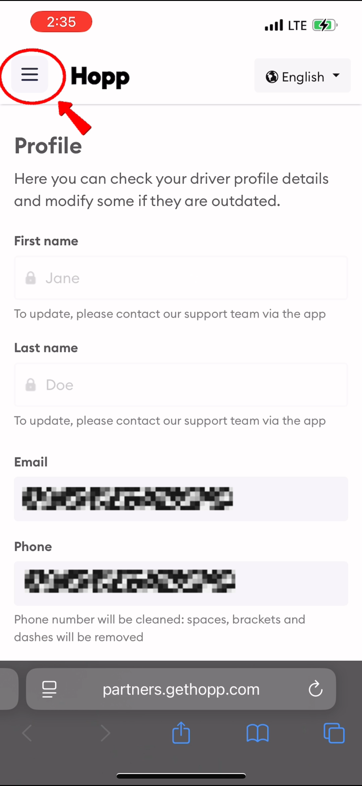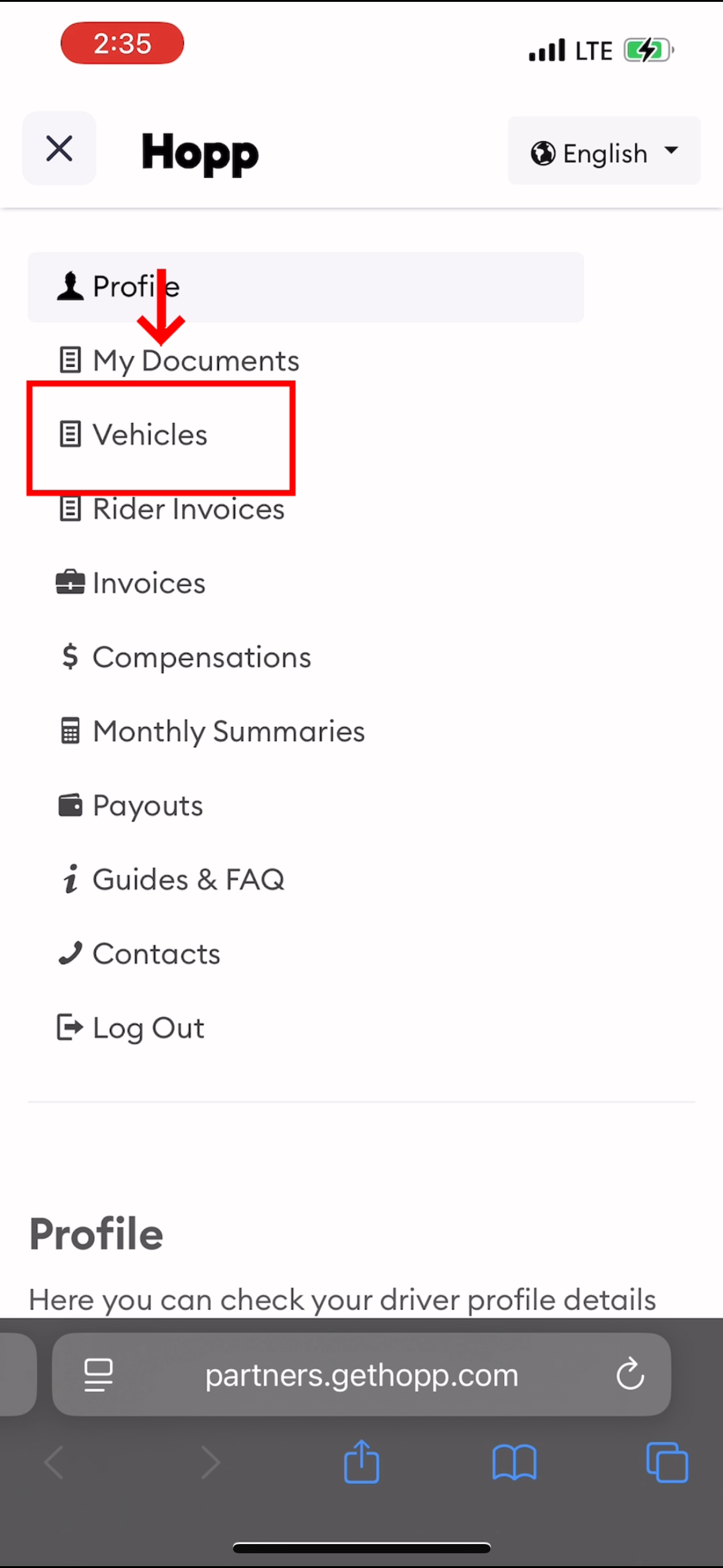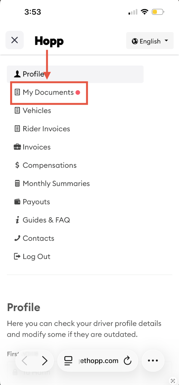 Opening the Driver Portal menu ↗