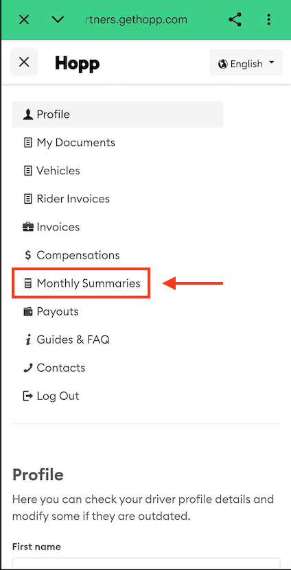 - Inside the Driver Portal menu, select Monthly Summaries.