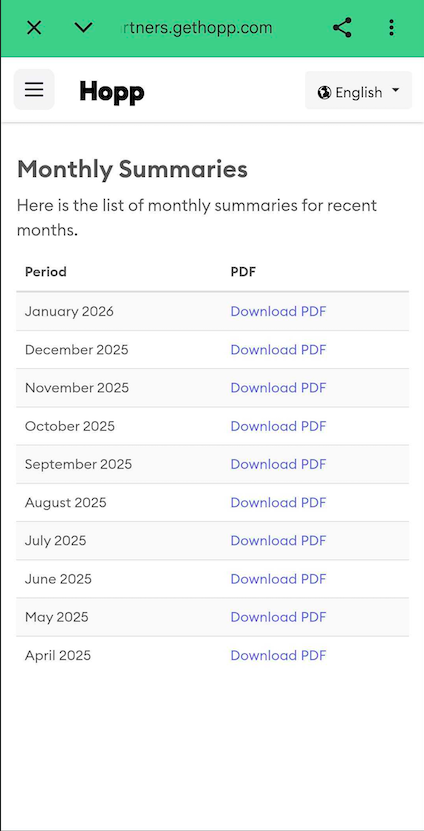 The amount of GST/HST you have collected while using Hopp can be found in your Monthly Summaries.